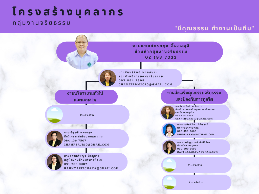 กลุ่มงานจริยธรรม กรมสนับสนุนบริการสุขภาพ กระทรวงสาธารณสุข ชั้น 8